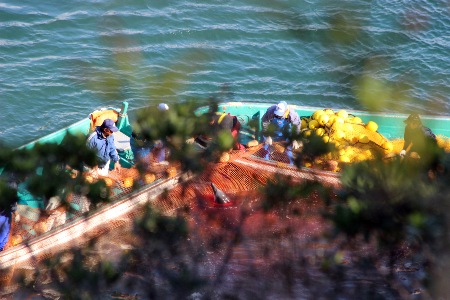 Zwei Netze mit Bojen wurden gespannt. Die Delfine konnten nicht mehr entkommen.