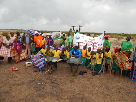 Nach etwa zwei Kilometer Fahrt auf einem löchrigen Weg endete diese für uns. Zu Fuß machten wir uns auf den Weg zum Treffpunkt. Die Schubkarren leisteten wertvolle Dienste über die Sanddünen. Es fing zu regnen an und in weiter Entfernung hörten wir Kinder als Begrüßung für uns singen. Etwa 50 Personen versammelten sich. Mehrere Lehrer, eine Schulklasse, Interessierte und auch die Aktivisten der Initiative. Gerne hielt ich vor allen einen Vortrag und lobte das tolle Engagement. Ich berichtete darüber, wie gefährlich die alten Netze und der Plastikmüll für viele Tierarten seien. Nicht nur in Kenia, sondern weltweit. Ich berichtete über meine Besuche in über 50 Ländern der Welt und wie notwendig es ist, aktiv gegen diese unsägliche Vermüllung vorzugehen. Ich erzählte von Makroplastik, wie Flaschen und Verpackungen und vom Mikroplastik, den man mit bloßem Auge fast gar nicht sehen kann. Ich hatte den Eindruck, dass wohl alle Teilnehmer noch nie etwas davon gehört haben. Wie hilfreich wäre es doch nur, wenn die Initiative einen Laptop und eine Webseite besitzen würde, um auch darüber zu informieren. Ich sagte den Kindern, dass ich Bilder von Fischen gesehen haben, die voll mit Plastikteilen waren. Die Augen der Teilnehmer wurden immer größer. Ich fragte sie, ob sie in Zukunft Plastikfische essen wollen? Ein lautes NEIN schallte mir entgegen. Ich sagte ihnen, dass aber genau das passieren wird, wenn wir es weiterhin zulassen, dass die Weltmeere weiterhin mit Plastik zugemüllt werden. Ich sagte ihnen, dass die Touristen hier auch keine Plastikfische essen möchten. Viele der Eltern leben von der Fischerei und auch vom Tourismus. Der Müll gefährde die Arbeitsplätze. In meinem Hotel sind Gäste aus der Schweiz. Sie erschraken über so viel Müll an den Stränden und werden Kenia wohl nicht mehr besuchen. Touristen wollen keinen Müll in ihrem Urlaub sehen. Viele der Hotels in Malindi haben bereits geschlossen und manche stehen zum Verkauf. Der Müll gefährdet also nicht nur die Umwelt und seine Tierwelt, sondern auch viele Jobs. Das Nicken vieler Köpfe zeigte mir, meine Botschaft kam an!