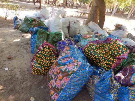 mit den 82 Säcken des gesammelten Dorfmülls, der städtischen