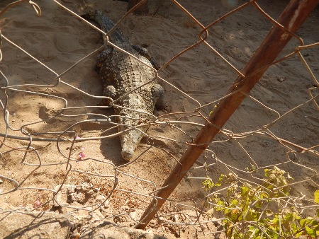 Krokodile gibt und es den Besuchern strengstens untersagt ist, bei