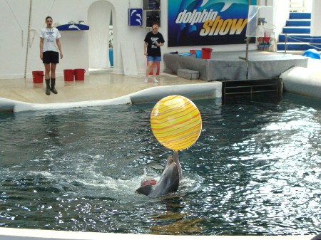 Bei jedem akrobatischen Sprung, den die Delfine hinlegten, tat mir mein Herz weh. Der Pool in unserem Hotel war grösser als das Bassin der Tiere.