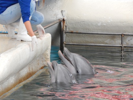 Es gibt definitiv keine medizinische Versorgung. Die Delfine bekommen immer die gleiche Nahrung, beim Fisch wird nicht abgewechselt, immer derselbe billigste Fisch.
