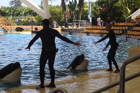 Orcas werden in der EU im Loro Park und im Marineland im französischen Antibes in Gefangenschaft gehalten und für kommerzielle Zwecke missbraucht.