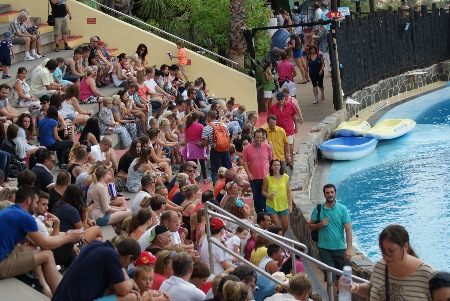 am Tag findet eine etwa zwanzigminütige Delfin-Show statt.