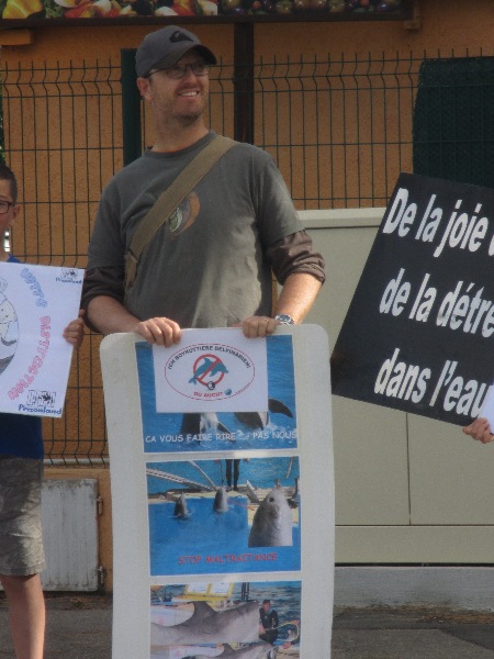 Dolphinarium Free" zusammen mit französischen Aktivisten die Schließung